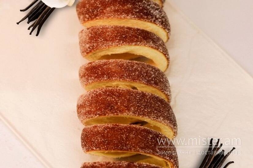 Кюртош з ваніллю — для поціновувачів м`якої ніжності: ароматна скоринка, обсипана ванільним цукром, дарує витончені квіткові нотки та легкий солодкий післясмак у кожному хрумкому шматочку!