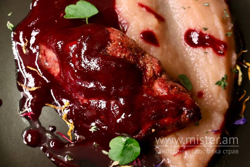 Familia Garden Філе качки подаємо з кремом пряного яблука та ягідним соусом