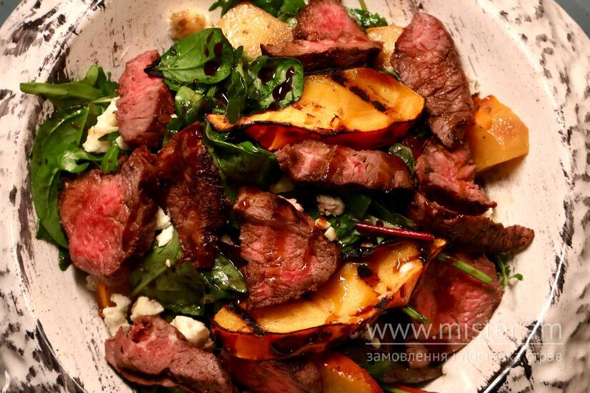 Салат з теплою яловичою вирізкою та грильованим шароном