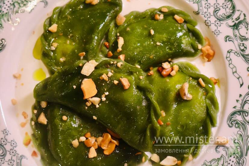 Familia Garden Шпинатні вареники з рікотою, густою сметаною та смаженим кеш`ю