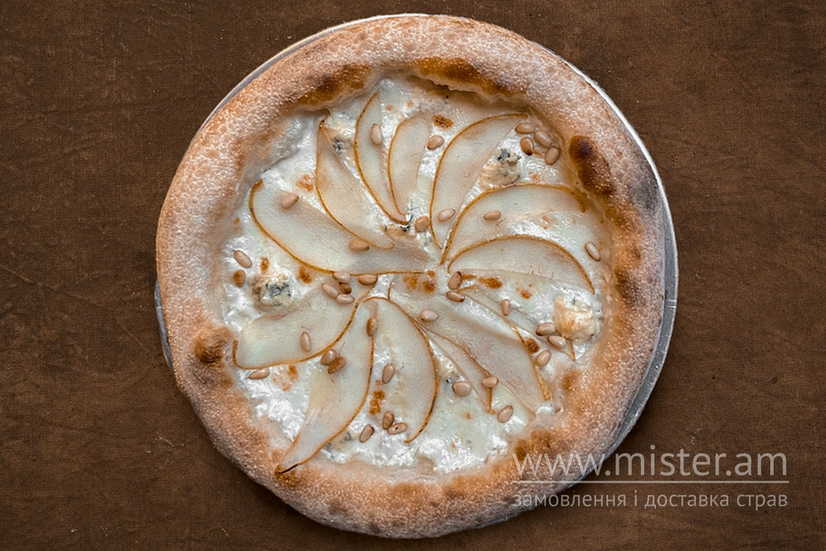Неаполітанське тісто, вершки, сир Моцарела, груша, Дор Блю, фісташка.