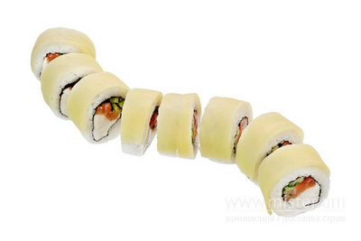 Норі, рис, крем-сир, огірок свіжий, такуан, лосось свіжий.