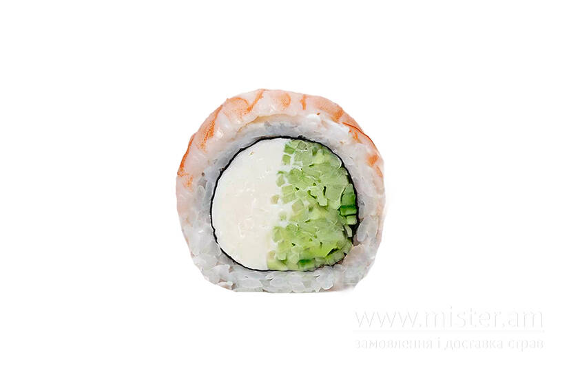 Рис, норі, крем-сир, огірок, креветка тигрова.