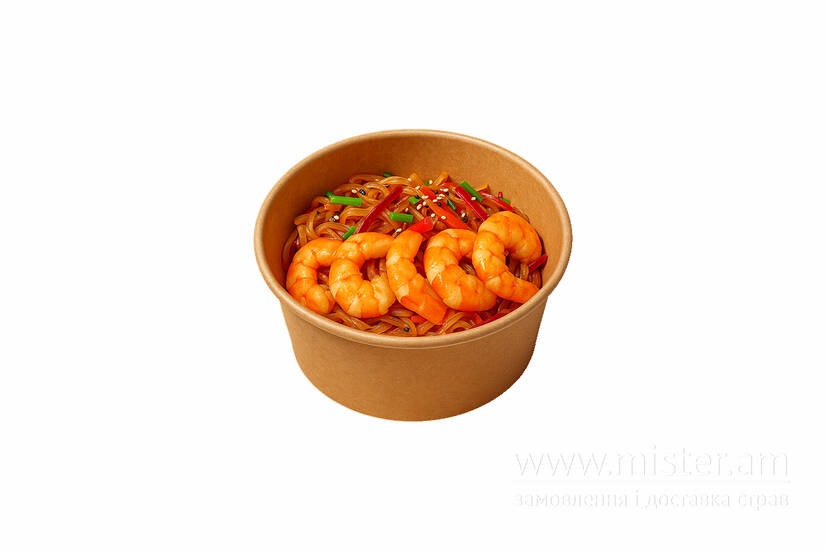 Локшина рисова, перець болгарський, печериці, цибуля червона, ріпчата, морква, імбир, часник, соус, зелена цибуля, кунжут.