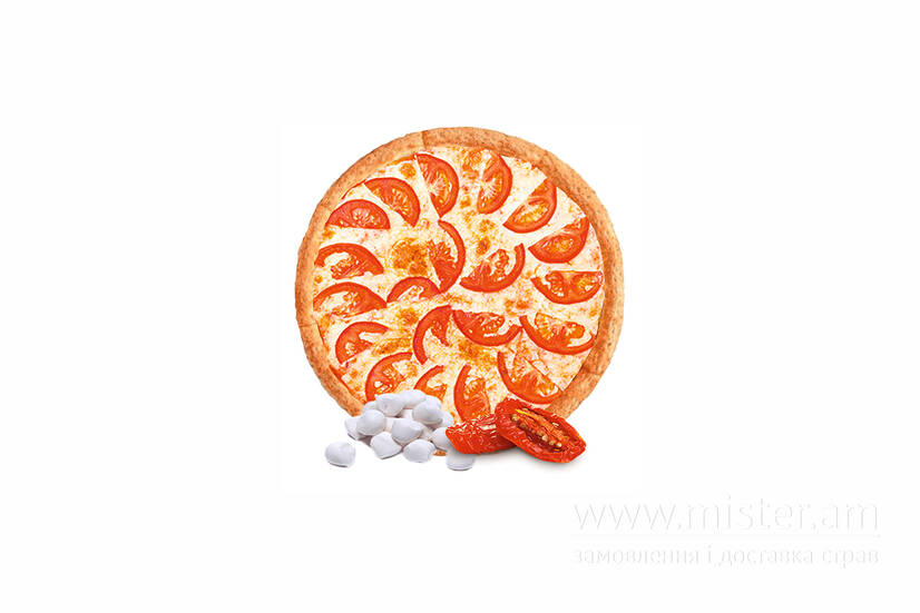 Томатний соус, томат в`ялений, помідор, сир пармезан, сир моцарелла.