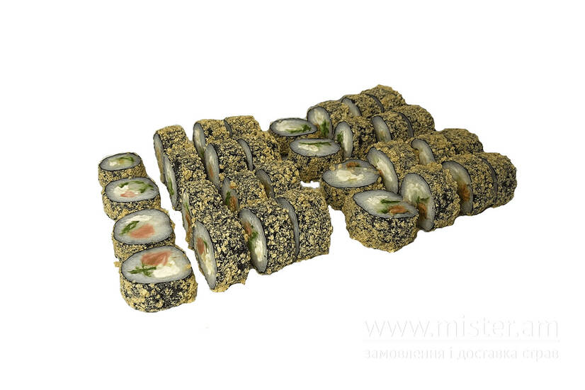 Смажені роли: креветка, лосось, мідія, унагі окунь.