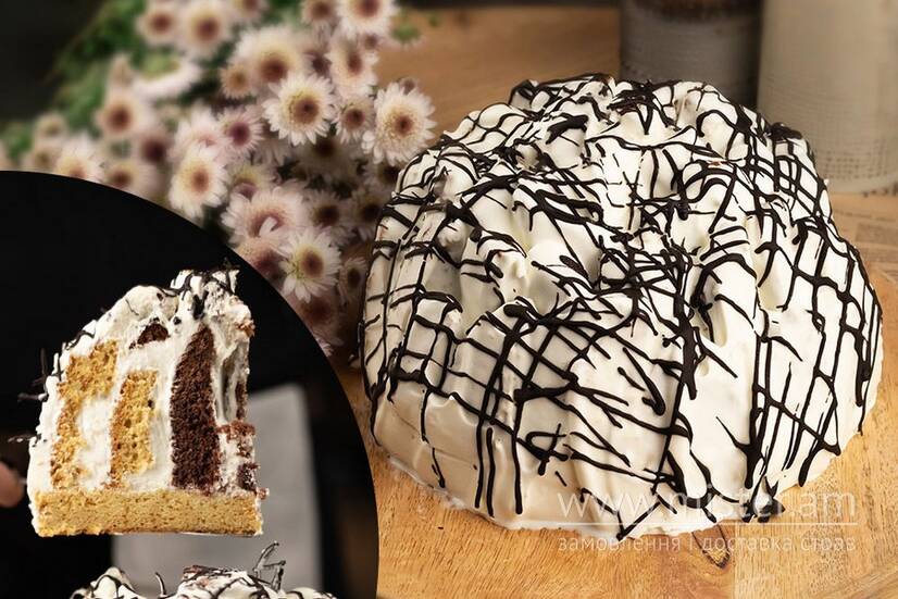 Комбінація двох видів бісквіту, шоколадного та молочного, на основі згущеного молока, у поєднанні зі сметанним кремом.