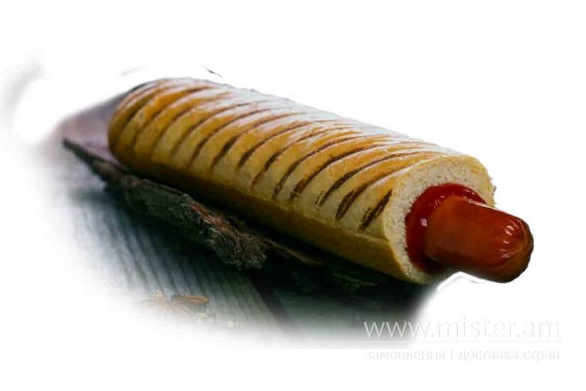 Булочка, сосиска, кетчуп, майонез, гірчиця.