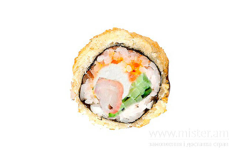 Сир, креветка, огірок, Спайс соус, панко, рис, норі.