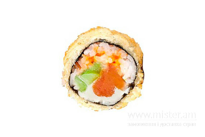 Cир, лосось, огірок, Спайс соус, панко, рис, норі.