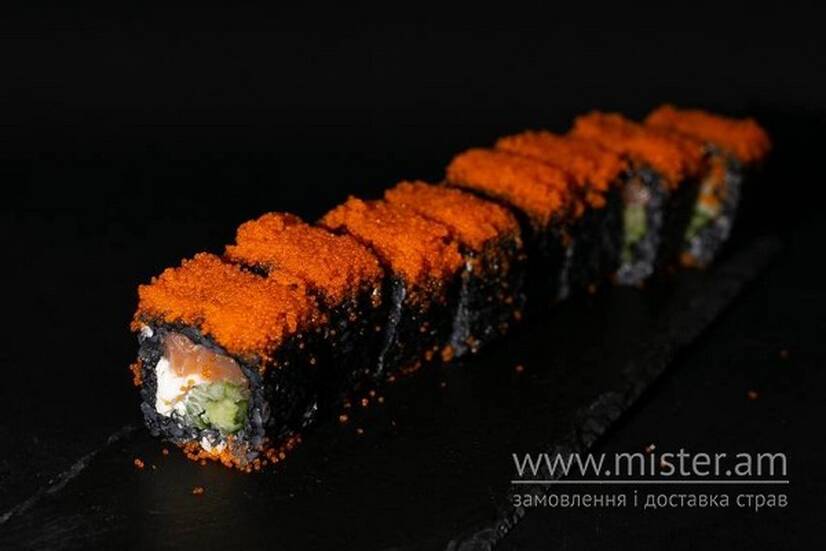 Норі, рис, чорнила каракатиці, крем-сир, лосось, огірок, ікра масаго.