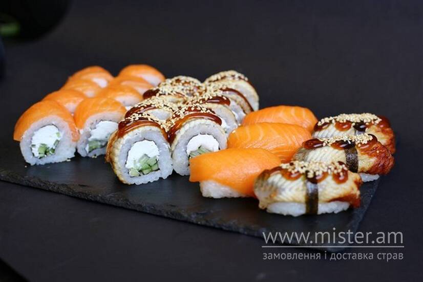 Філадельфія з лососем, Філадельфія з вугрем, нігірі сяке 3 шт., нігірі унагі 3 шт.