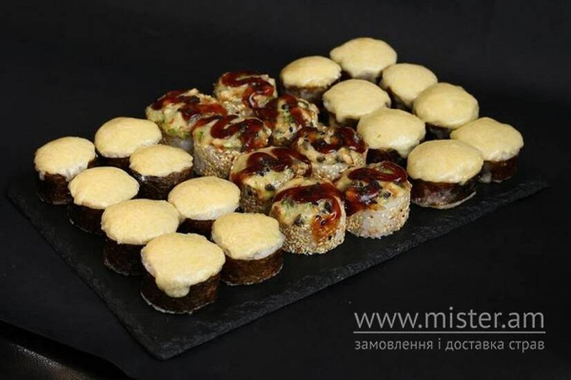 Хіросіма, запечений з лососем, запечений з креветкою.