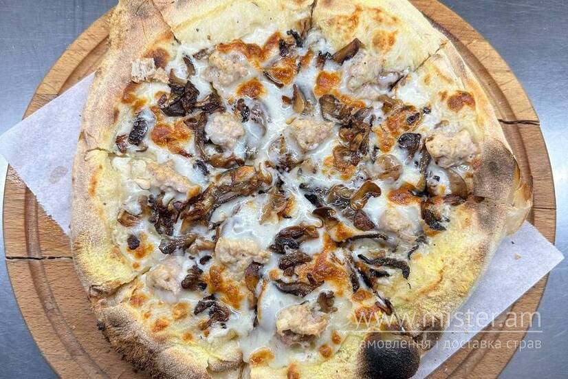 Вершковий соус, сир моцарела, гриби смажені, трюфельна паста, фарш.