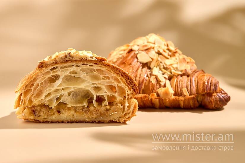 Дабл бейк круасан з миндалевим франжипаном та мигдальними пластівцями зверху.