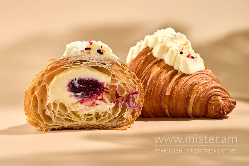 Круасан з холодним ванільним кремом та ягідним компоте.