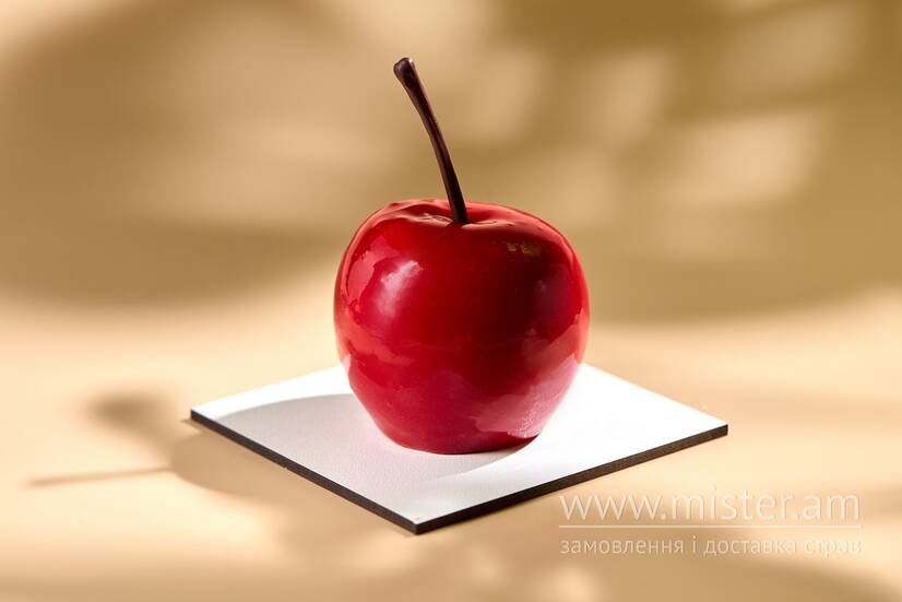 Брауні, вишневе компоте, та шоколадний мус. Покриття дзеркальна глазур, в декорі намелака з вишнею.