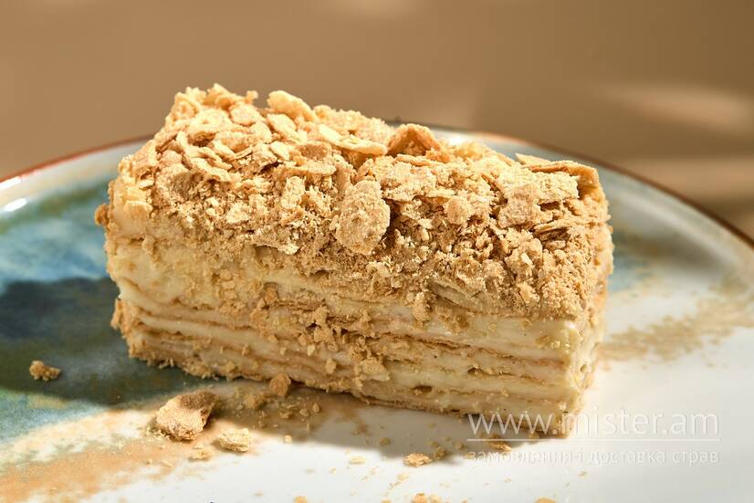 Класична варіація торту Наполеон на основі коржів з рубленого пісочного тіста та заварного крему.