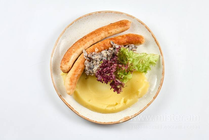 Курячі ковбаски з грибним соусом