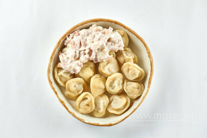 Паштет на Тельнова Пельмені фірмові під соусом Карбонара