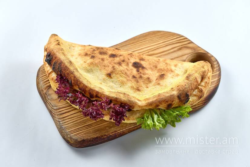 Соус Pomodoro, моцарела, мисливські ковбаски, кукурудза, помідори, пряно-томатний соус та свіжий лист салату.