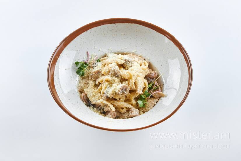 Білі гриби, куряче філе, часник, розмарин, вершки, Grana Padano.
