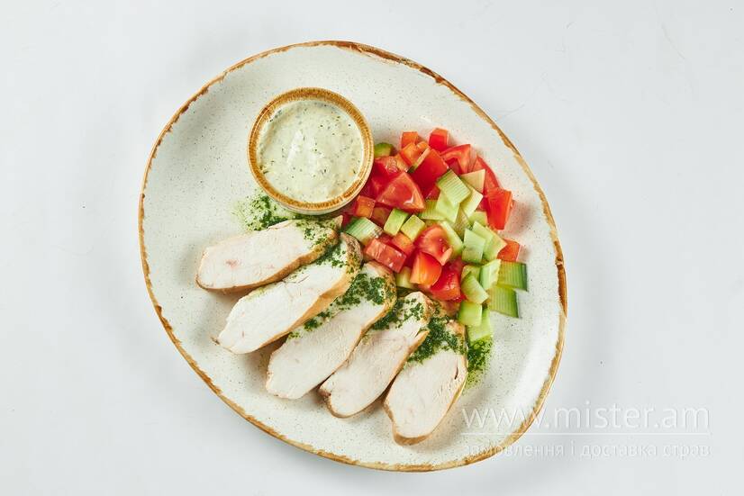 Куряча грудка на грилі з овочевим салатом