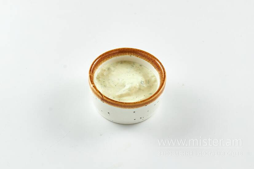 Сметана, гірчиця, соєвий соус, солений огірок, часник.