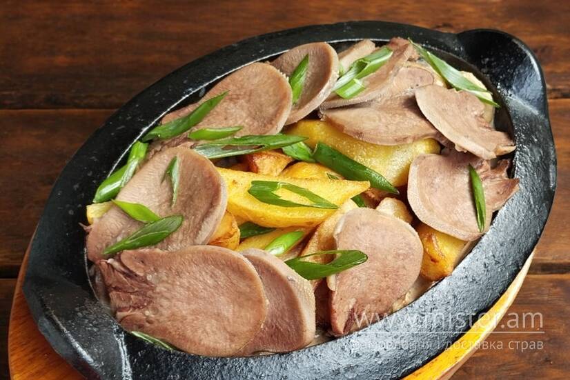 Пательня зі свиними ковбасками, овочами гриль та картоплею по-селянськи