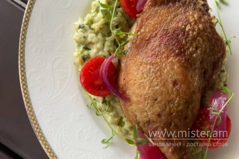 Качина ніжка та різотто із шпинатом