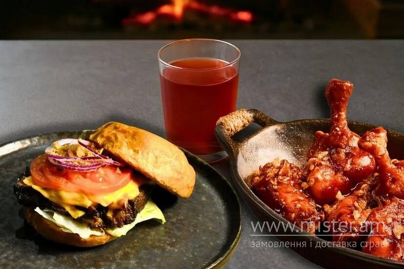Smocked ribs BBQ бургер, крильця Баффало, компот.
