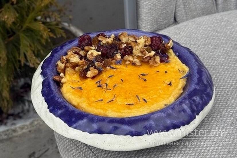 Ресторація Кропивницьких Карамельний банош з сухофруктами та горіхами