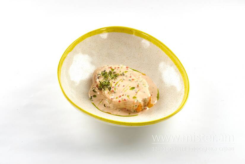 Ніжне філе лосося, приготоване на пару, з гарніром із амаранту. Легкий і делікатний смак моря.