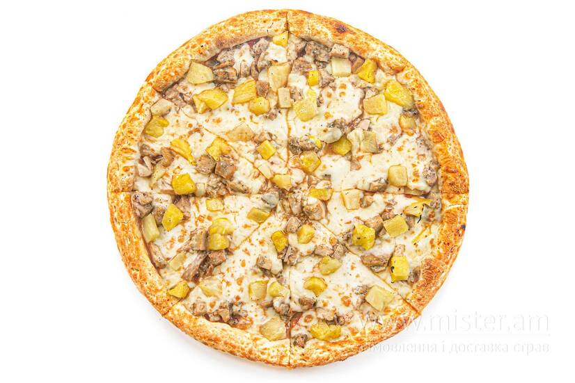 Курка, моцарела, ананаси, соус пелаті-базилік.