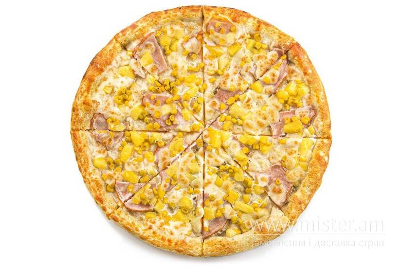 Соковитий балик, солодкі ананаси, консервована кукурудза, моцарела та вершковий соус.
