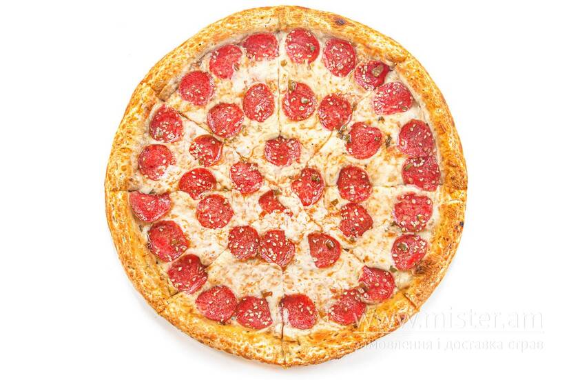Подвійна пепероні, моцарела, пікантний перець чилі, білий кунжут та соус пелаті-базилік.