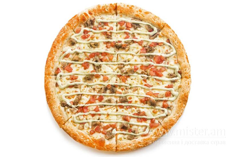 Запечене стегно курки, томати, моцарела та соус Ранч.