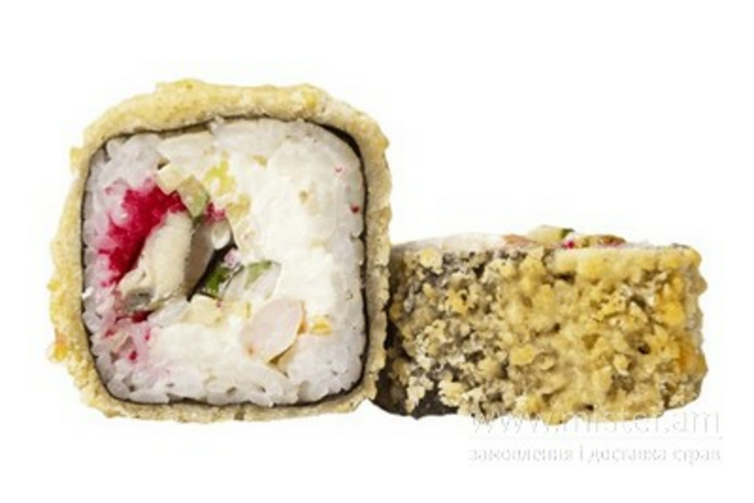 Васабі, вугор, ікра масаго, імбир, крем-сир, кунжут, кляр, лосось, норі, панірувальні сухарі, рис, соєвий соус.