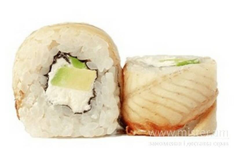 Авокадо, васабі, вугор, імбир, крем-сир, кунжут, норі, рис, соус унагі, соєвий соус.