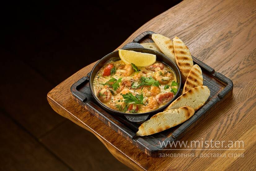 Соковиті тигрові креветки в ніжному вершковому соусі, що тане в роті.