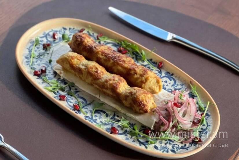 Фарш курячий, цибуля синя, зелень, лаваш.