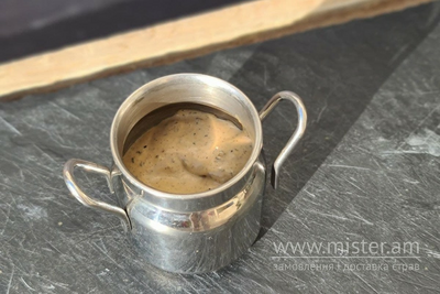 Вершковий соус на яловичому демігласі з чорним перцем.