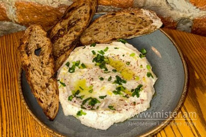 Ніжний і повітряний мус із ікри тріски, лимонного соку, цибулі, оливкової олії та вершків. Має легку, оксамитову текстуру й витончену солонувату нотку. Посипається пряним сумахом і подається з хрустким гречаним багетом.