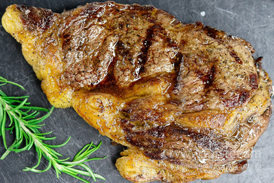 Найпопулярніший стейк у світі. Йому властиві жирові вкраплення по всьому периметру стейка. Поєднує в собі 3 паралельні м‘язи. Витримуємо в холодильнику сухої ферментації. Готуємо в хоспері. Рекомендований ступінь просмажування medium; medium well.