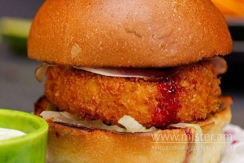 Цілий камамбер в паніровці, ягідне варення, груша, гірчично-медовий соус, айсберг. Сирне задоволення гарантоване!