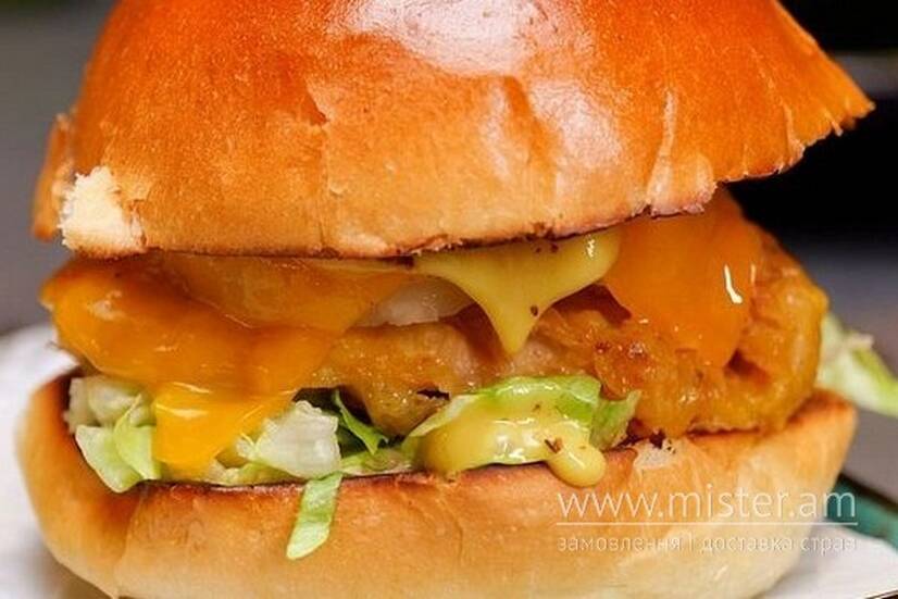 Новий бургер в гавайському стилі: хрустка курка, ананас, чеддер, гірчичний соус, айсберг та манго-спайсі.