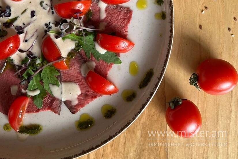 Яловичий ростбіф Medium, соус з тунця, рукола.