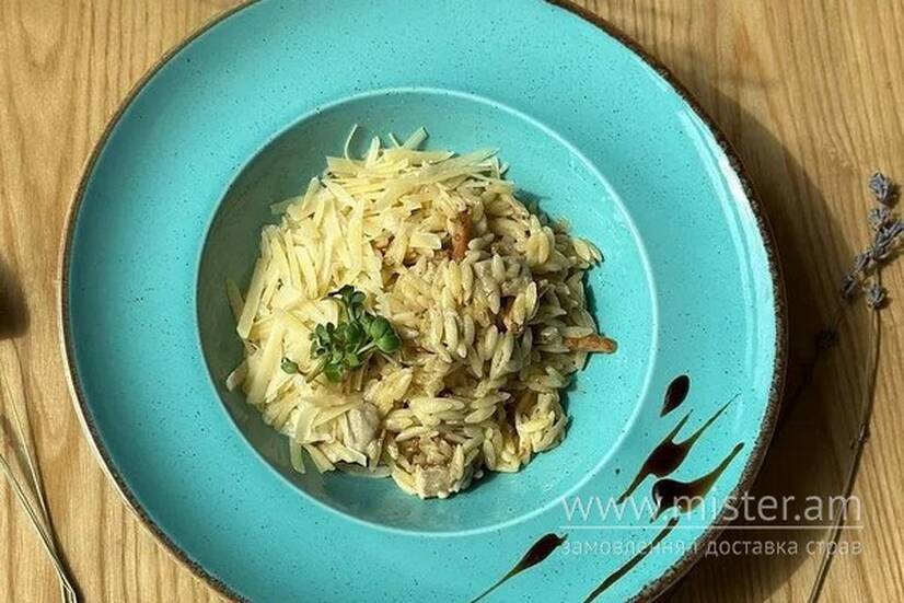 Вершковий соус, пармезан, білі гриби, лисички, цибуля.