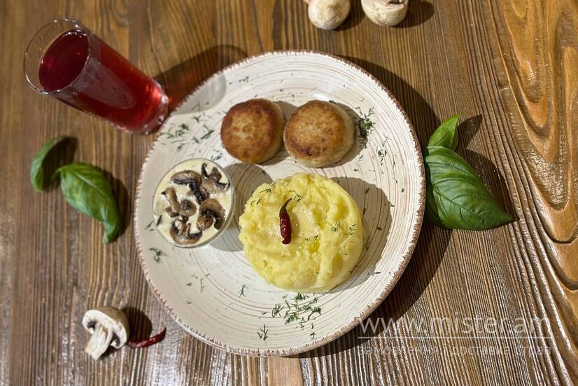 Бар 0,5 №5 Рибні котлети (2 шт.), пюре картопляне, грибний соус