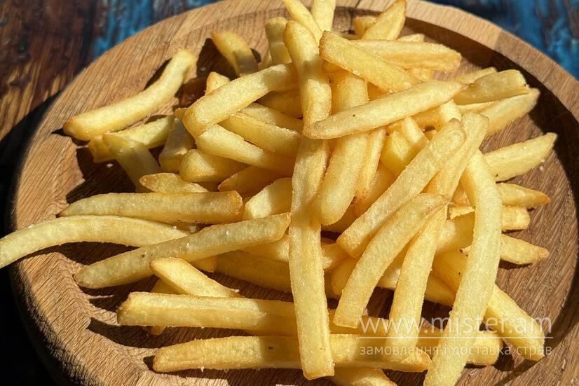 Класична картопля фрі — хрусткі зовні та м`які всередині скибочки картоплі, обсмажені до золотистої скоринки. Ідеальна як самостійна закуска або доповнення до бургерів та сендвічів.